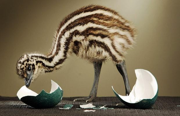 Breeding takes place in May and June, and fighting among females for a mate is common. Females can mate several times and lay several clutches of eggs in one season. The male does the incubation; during this process he hardly eats or drinks and loses a significant amount of weight. The eggs hatch after around eight weeks, and the young are nurtured by their fathers. They reach full size after around six months, but can remain as a family unit until the next breeding season. The emu is an important cultural icon of Australia, appearing on the coat of arms and various coins. The bird features prominently in Indigenous Australian mythology. ...more on Wikipedia